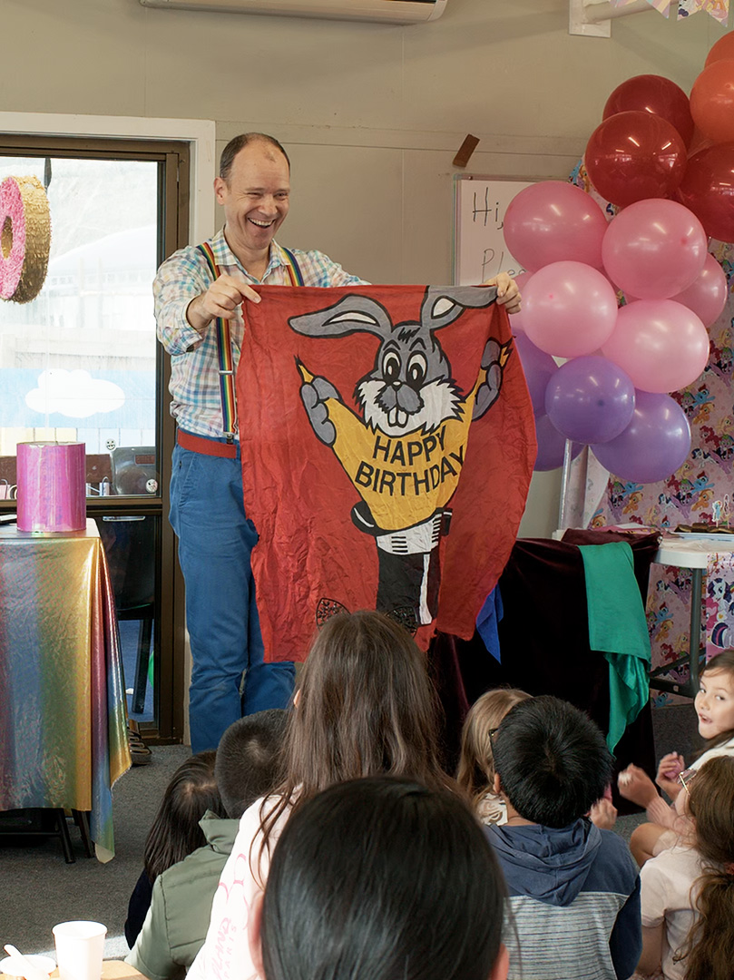 If you're looking to go all-out to make your child's party the best ever, this great package includes the best tricks, great music, amazing props, a live bunny and dove, and balloon twisting for the kids. If you're looking to go all-out to make your child's party the best ever, this great package includes the best tricks, great music, amazing props, a live bunny and dove.